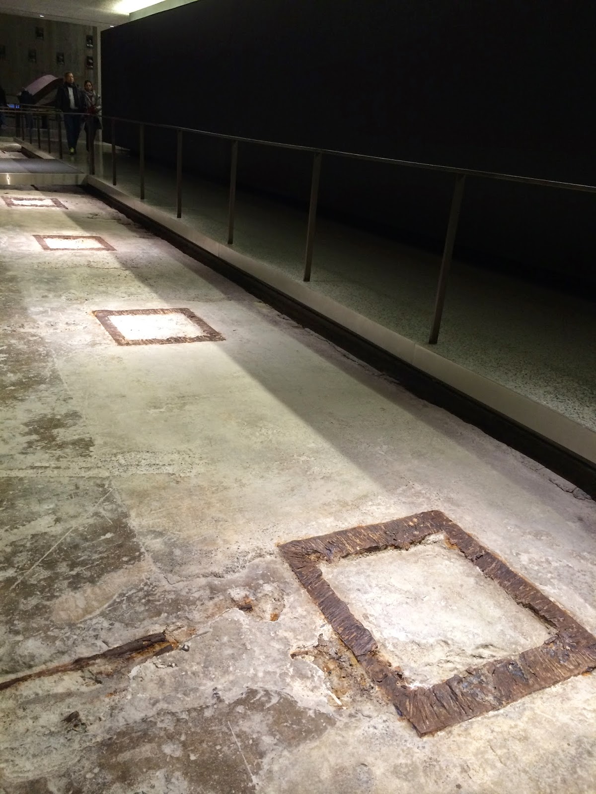 Get your ticket beforehand and save the wait in line. Tickets are timed entrances to the hour and day, and big bucks – $24 for adults, which rivals any museum I know. I also opted to spend $20 on a 1 hour guided tour, on the theory that if I’m spending that much money I might as well go all the way. Mercifully, the tour was not conducted by someone shouting his way over the crowds (which would have defeated the somber mood) but via volume-controlled headsets. Should you feel like roaming away from your group, you can hear the tour leader from a distance of up to 100 feet. And there is much roaming as the tour proceeds along the periphery of both towers, their original steel columns shorn down to the ground and forming a ghostly outline of each tower.